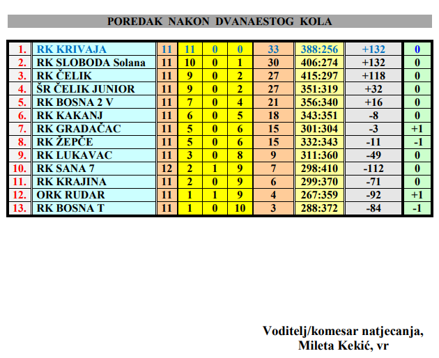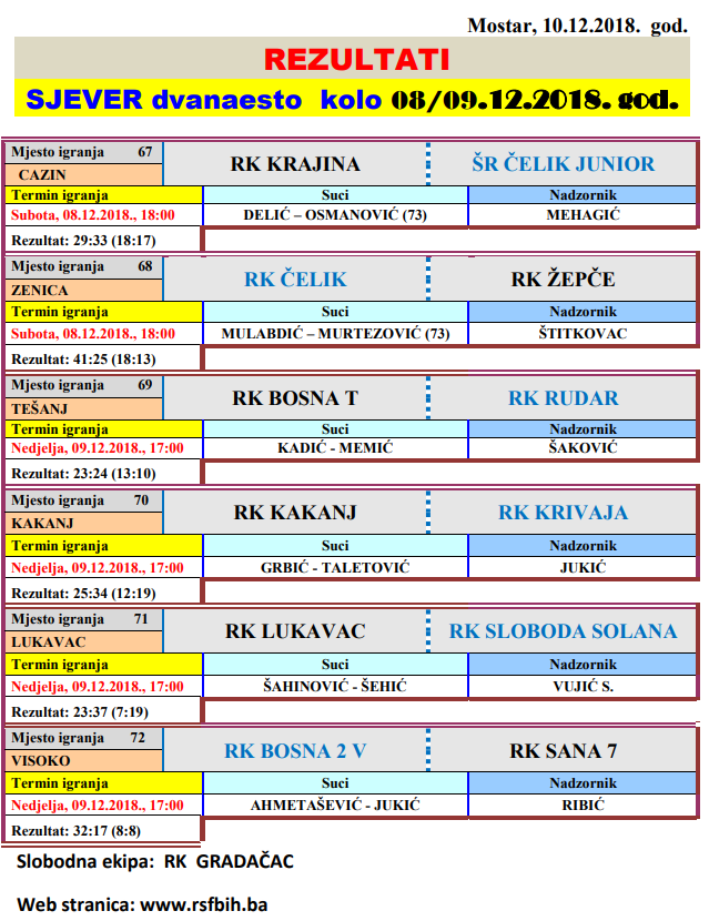 Glasnik 12. kola lige Sjever za muškarce