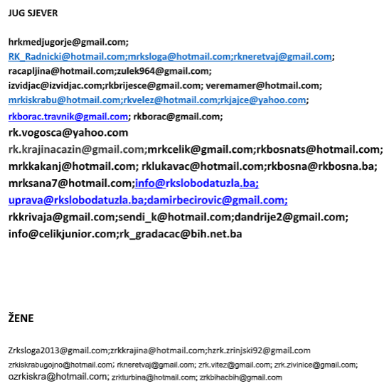 Mailing lista klubova RSFBiH