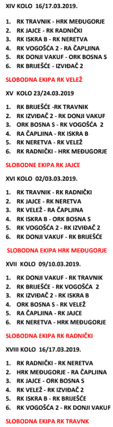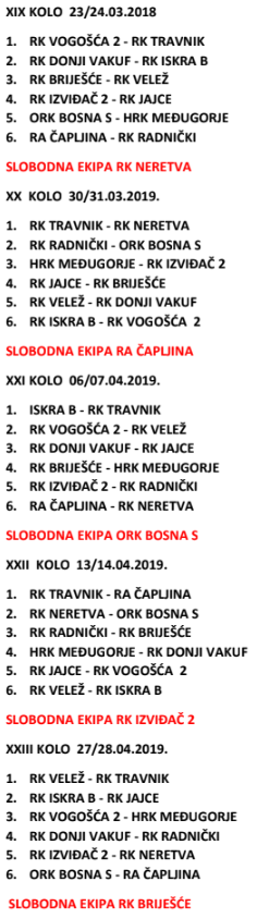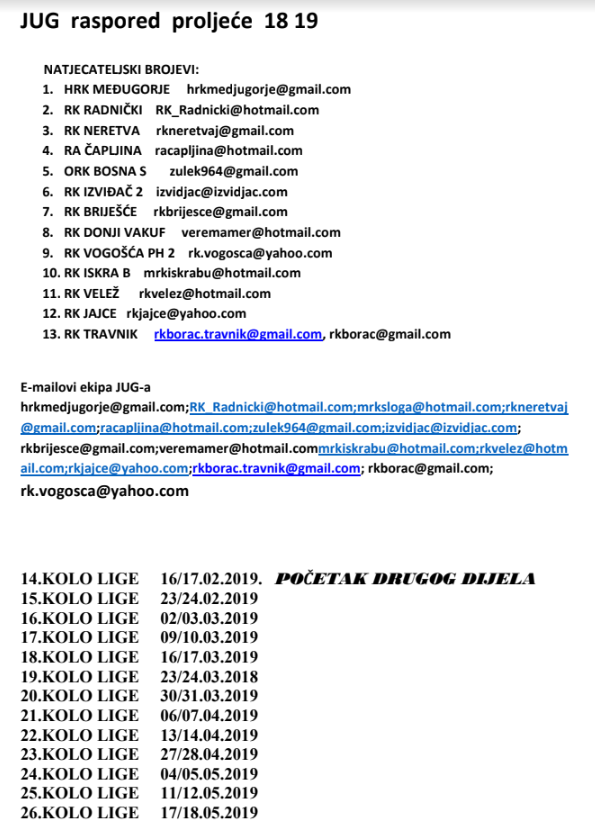 Raspored proljetnog dijela prvenstva – liga Jug