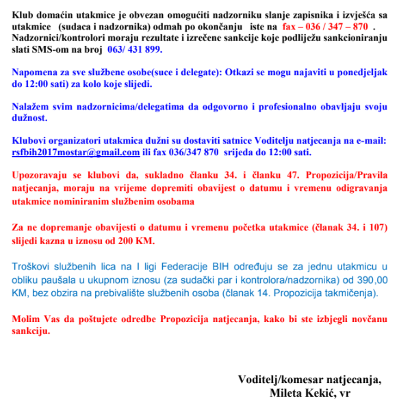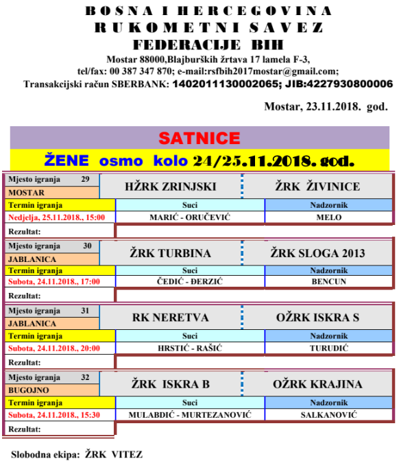 Raspored utakmica 8. kola lige FBiH za žene