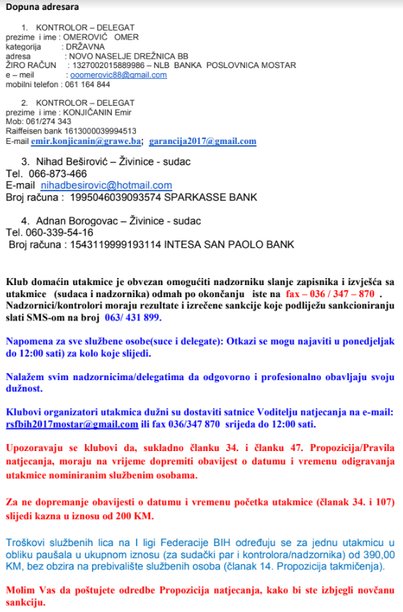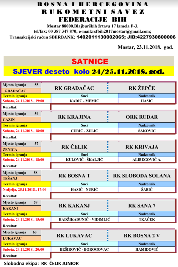 Raspored utakmica 10. kola lige Sjever za muškarce