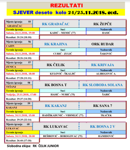 Rezultati 10. kola lige Sjever za muškarce